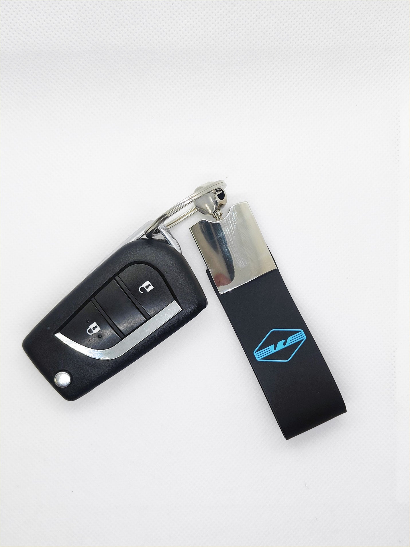 Portachiavi Luxury in Metallo e gomma nera con caratteri e simbolo in rilievo
